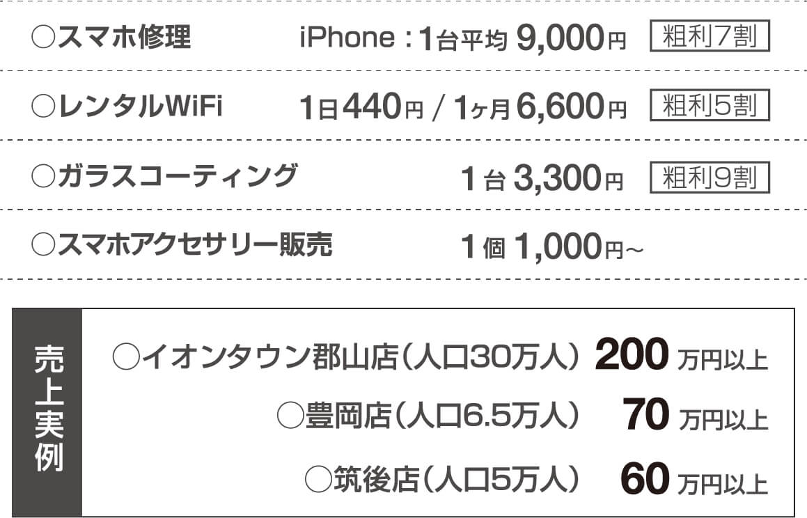 学習塾やパチンコ屋、美容室など、様々な業界の方が加盟されており、本業でのご経験やノウハウを活かして営業されています。