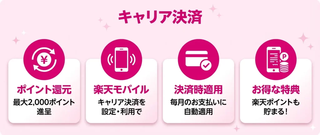 | SPU+2倍の条件 | 月合計2,000円(税込)以上のキャリア決済利用+エントリー |