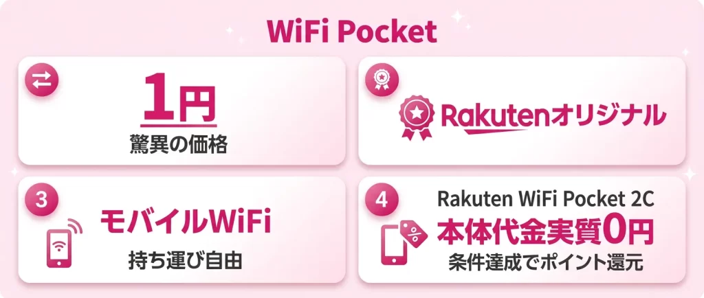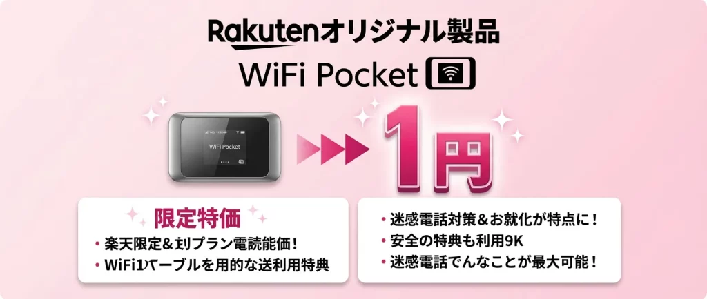 Rakutenオリジナル製品(WiFi Pocket)が1円