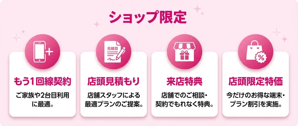 ショップ限定キャンペーンは内容や期間が頻繁に変わります。来店前に公式サイトで最新のキャンペーン情報を確認しておくのが確実です。