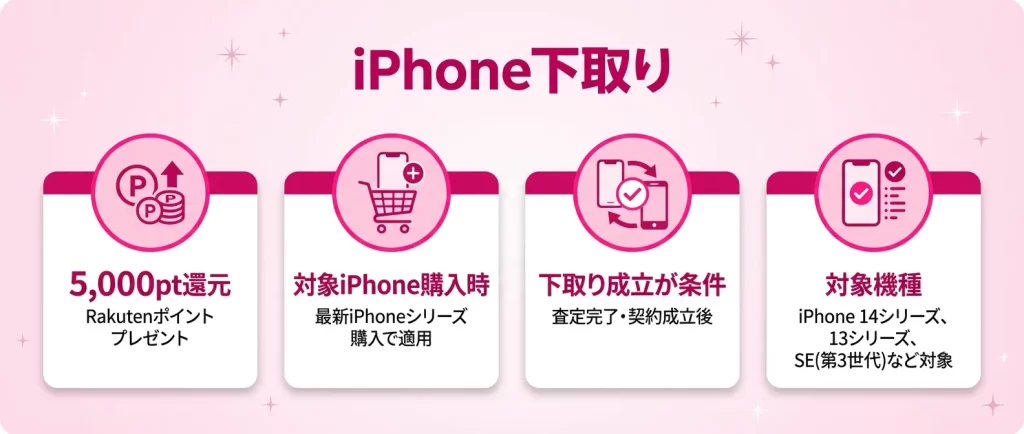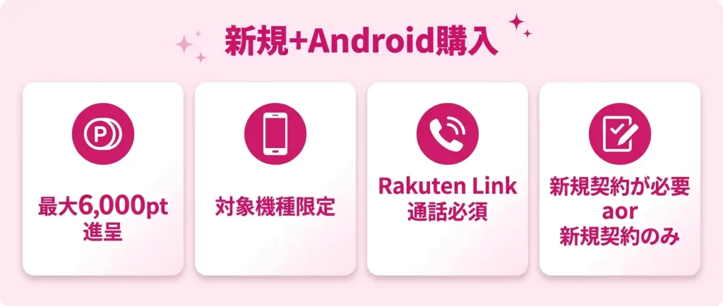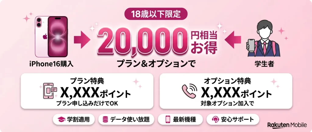 | 注意事項 | iPhoneは対象外。Rakuten最強プラン(データタイプ)も対象外 |