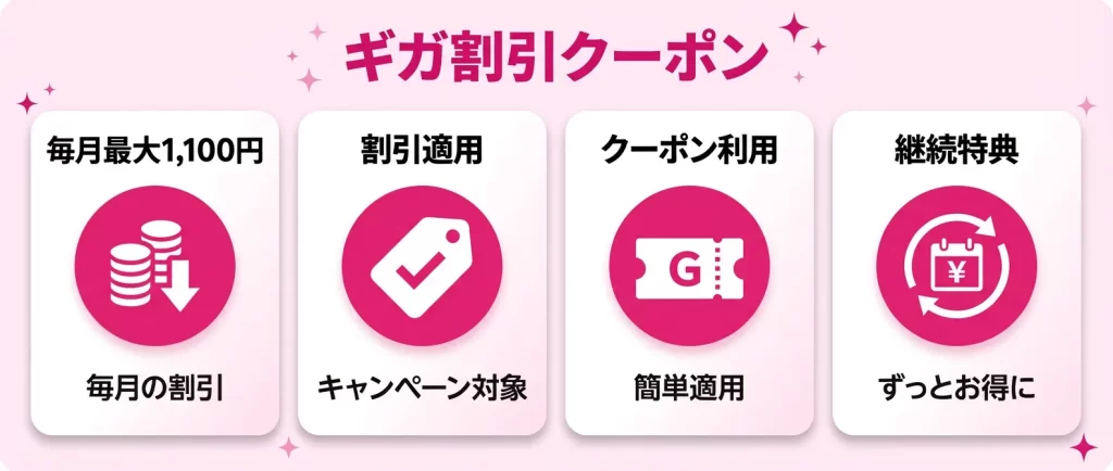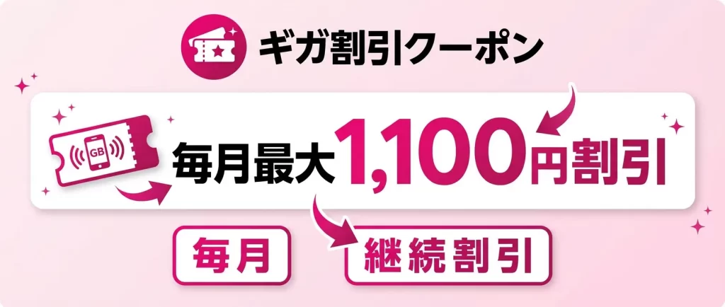 最強家族割・最強青春割・最強こども割など他の月額割引キャンペーンとの併用も可能です。クーポンは毎月手動で入力する必要があるため、忘れないようリマインダーを設定しておくと安心です。