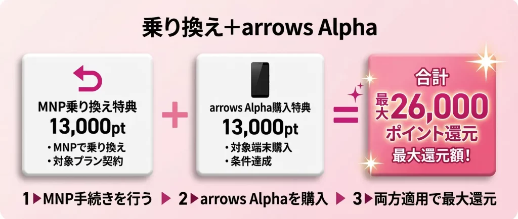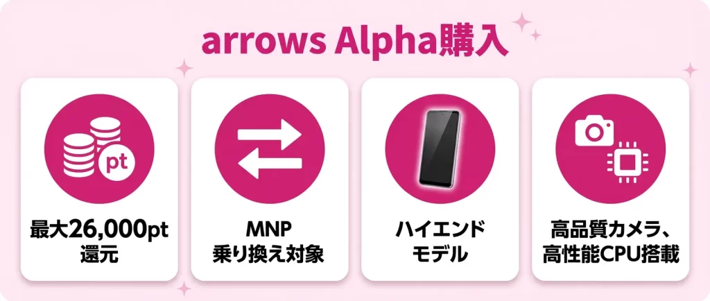 arrows Alpha購入+MNP初回申込で最大26,000pt