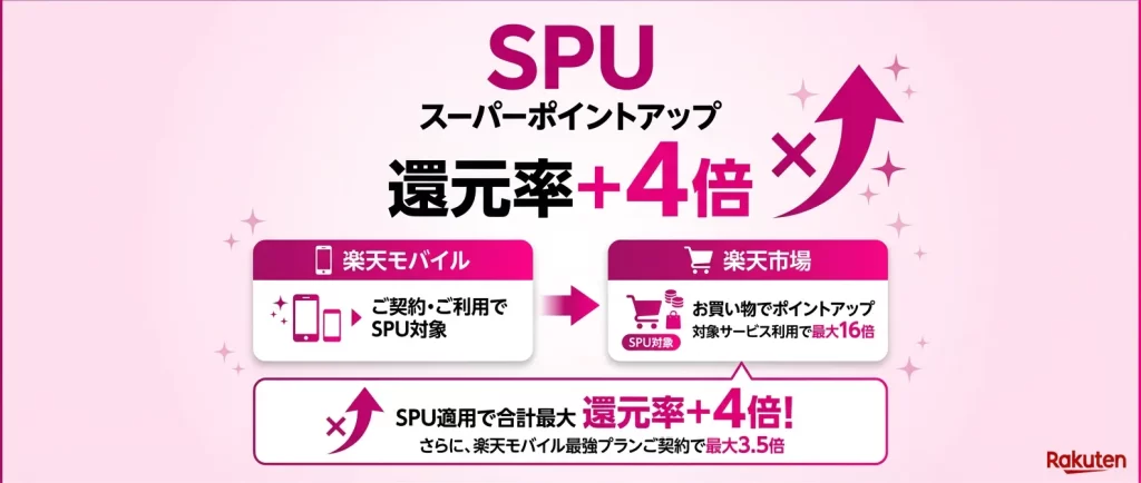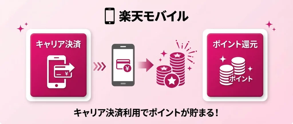 | 特典 | 利用額の最大2%ポイント還元(楽天モバイル1%+楽天カード1%)+SPU+2倍(月2,000円以上利用時) |