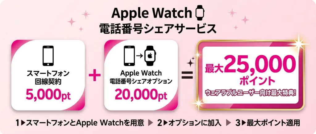 Apple Watch電話番号シェアサービスで最大25,000ポイント進呈